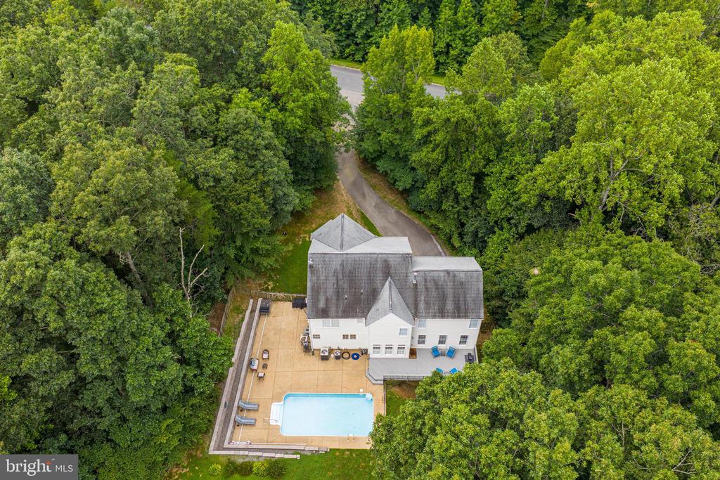 Brand New AC just installed and new roof coming soon! Amazing value, price below market for quick sale! Nestled on five private and tranquil acres, backing to Motts Run Reservoir and preserve, this gorgeous 4 bedroom, 3.5 bath home has been beautifully designed and is graced by an abundance of light and striking design features that truly put it in a class of its own! The beauty of this property begins outside with a winding paved driveway, tailored stone and stucco facade with covered entry, 2-car garage, sundeck, and a shimmering in-ground pool with extensive hardscaped patio and surround. Fine craftsmanship continues inside with a soft neutral color palette, decorative moldings, high ceilings, Brazilian cherry hardwood floors, 2 fireplaces, a huge gourmet kitchen, and luxurious primary suite, as new carpeting, spectacular upgrades and meticulous maintenance create instant move-in appeal. ****** Rich hardwood floors and decorative moldings in the foyer welcome you home and continue up and into the formal living room and the formal dining room both accented with floor to ceiling arched windows and wainscoting. French doors open into the gourmet kitchen that is sure to please the sophisticated chef with gleaming granite countertop