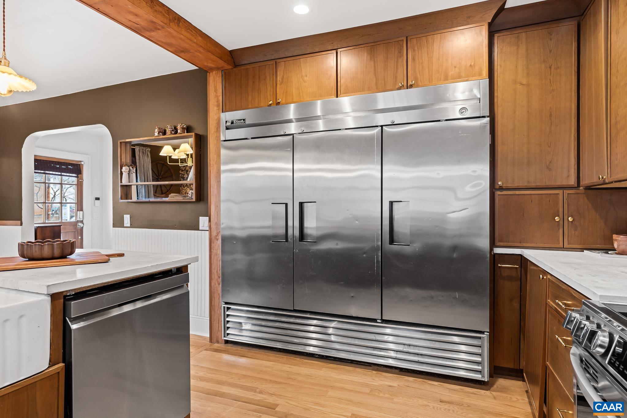 Fresh renovations sparkle in every corner of 134 Bellevue Avenue, turning this Cape Cod cottage into one of Orange, Virginia’s most striking makeovers. From the moment you step inside, the home feels reborn: new systems, new finishes, new style, and a layout reworked for comfort and creativity. The kitchen takes center stage with custom cabinetry, gleaming gold fixtures, a statement concrete countertop, and an industrial refrigerator that feels ready for both daily living and commercial production. The renewed primary suite carries warm, curated tones, a beautifully redone bath, and a smart walk-in closet that flows seamlessly into the laundry area. Top-to-bottom upgrades give the entire property a crisp, modern heartbeat while preserving its cottage charm. Just three minutes from Orange’s lively Main Street, this mixed-use property is currently home to both a bakery and a residence, offering rare flexibility for living, working, or blending the two. Fully renovated, brilliantly located, and ready for its next visionary owner.