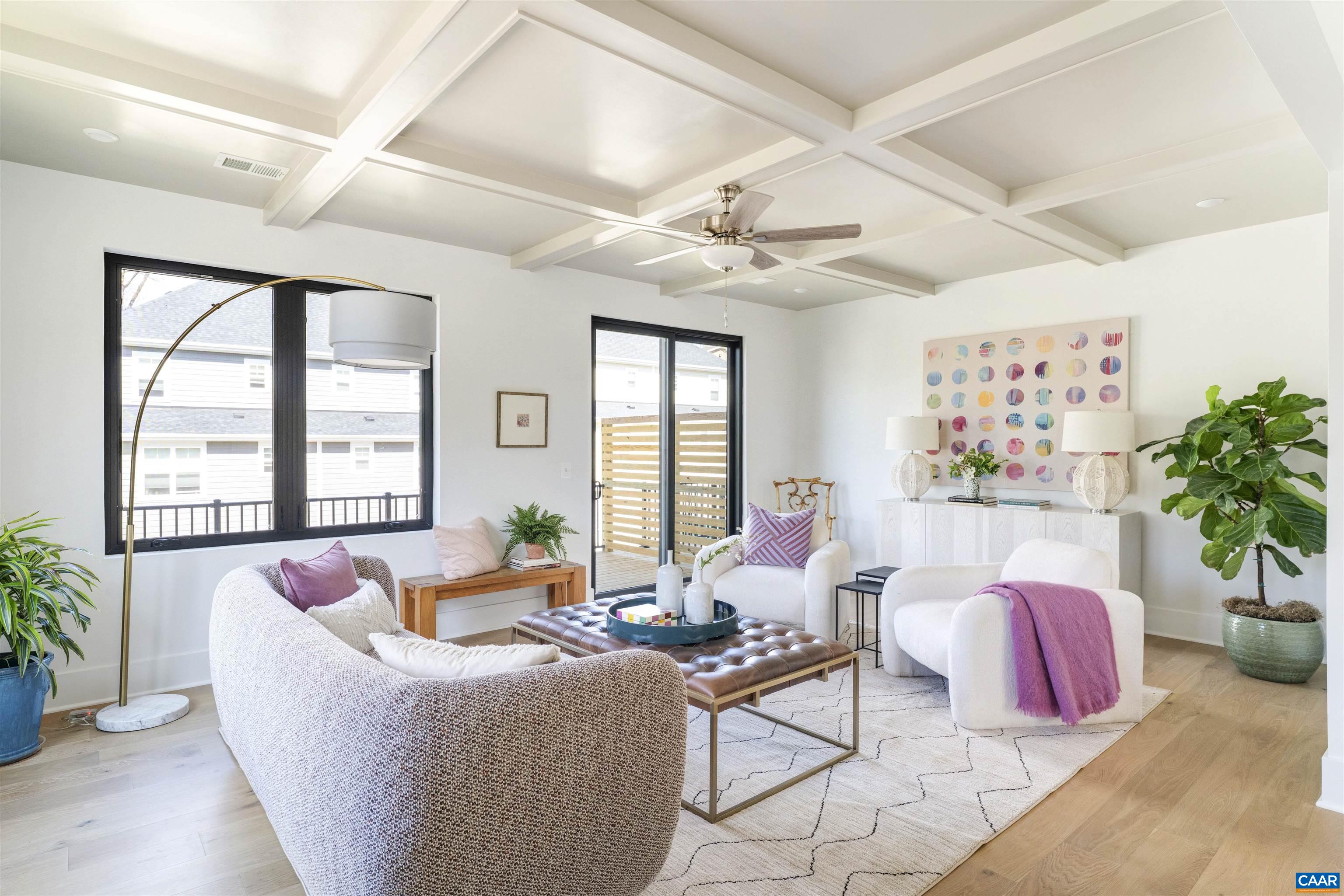 A newly constructed contemporary townhome available for immediate move-in, this well appointed contemporary home offers a nice blend of modern design, flexibility, and convenience. The ground-level living space includes a kitchenette and full bath, making it well suited for a private home office, guest suite, or separate living area for extended stays. Designed for today’s professional lifestyle, the main level features an open-concept layout with rich white oak engineered hardwood floors, generous living and dining areas, and a beautifully appointed kitchen highlighted by a waterfall-edge countertop—ideal for both daily living and hosting colleagues or friends. Clean lines, quality finishes, and a low-maintenance design make this home especially appealing for those seeking a refined yet practical residence. A full two-car garage plus driveway provides valuable off-street parking. Photos of recently furnished model home.