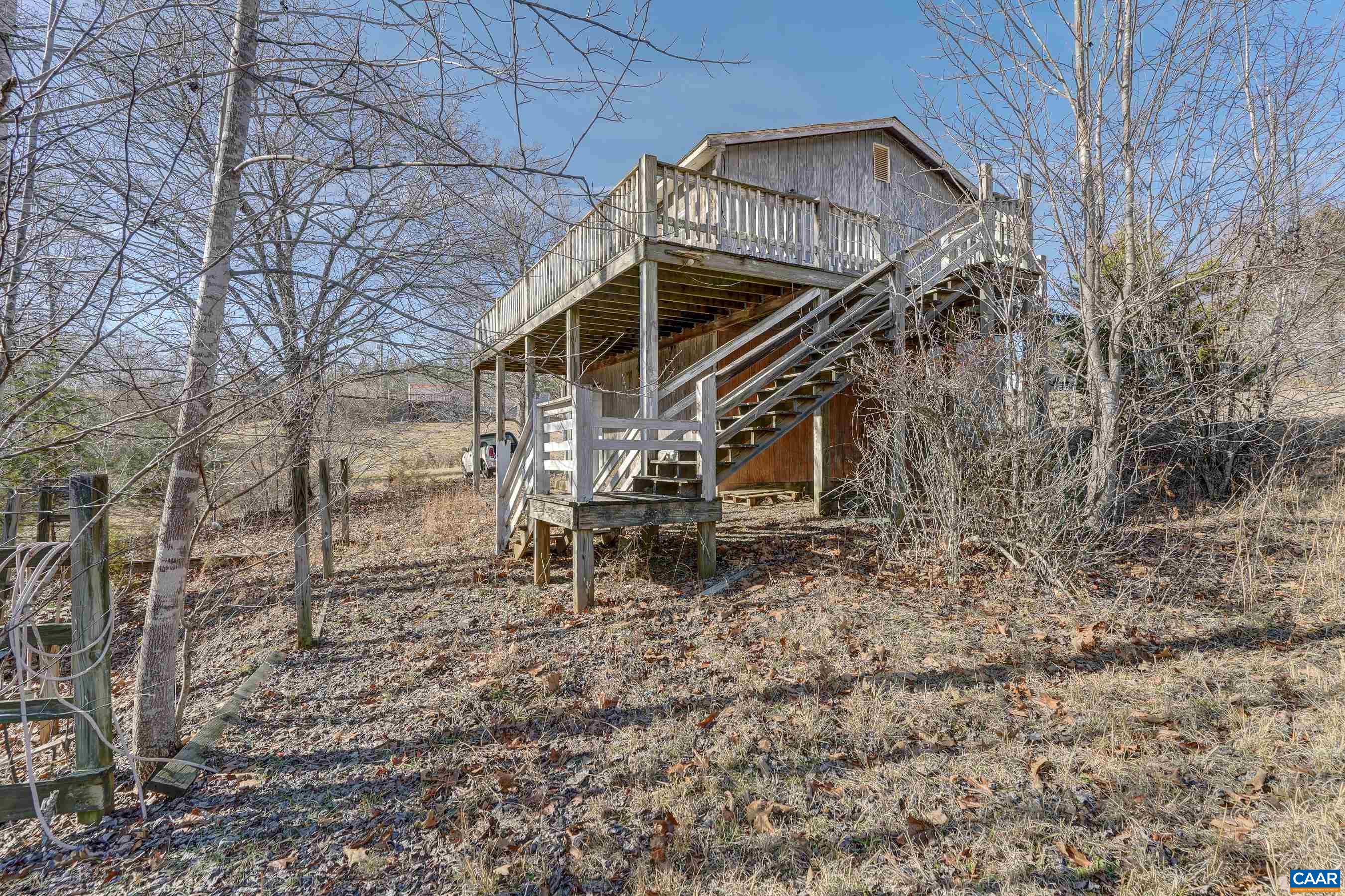 COMPLETION OF RENOVATION NEEDED!!Located on 2 private acres in Scottsville, this brick ranch offers peaceful country living just minutes from Charlottesville. Built in 1980, the main house features 4 bedrooms and 1 bath, with solid block-and-wood construction that provides a strong foundation for future improvements.Renovations were thoughtfully started,giving the next owner a head start to bring their vision to life. Much of the preliminary work is already in place,making this an ideal opportunity for an investor, renovator, or buyer looking to create their dream home without starting from scratch. Flooring throughout the home currently consists of unfinished plywood, allowing buyers to select finishes that best suit their style. A standout feature of the property is the detached two-car garage with an apartment above, offering excellent flexibility for guests, rental income, or a home office. Outdoor features include a deck and porch overlooking mature trees and open yard space, ideal for gardening, recreation, or quiet relaxation.The property is served by a deep well and standard septic tank (last pumped in 2022),along with an electric heat pump for heating and cooling. This home is selling "as is" no known defects.