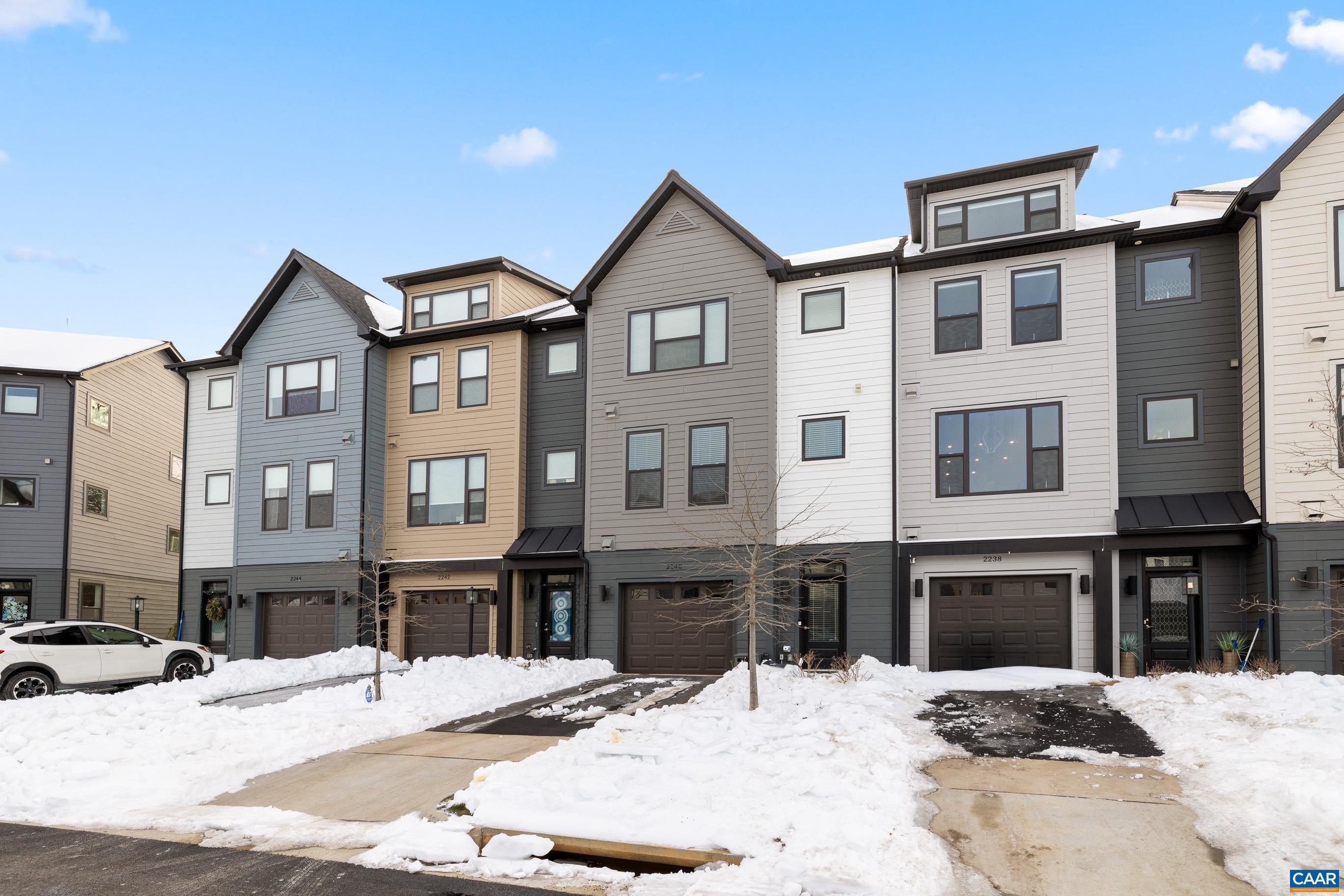 Like-new Southern Development Bainbridge Townhouse in popular Belvedere neighborhood. Discover a gorgeous gourmet kitchen filled with plenty of light, gas stove, granite countertops, a large center island, and a spacious eat-in dining area,. The living room is truly the heart of the home, highlighted by an electric fireplace and built-in bookshelves. Downstairs, a spacious recreation room with a full bath offers incredible flexibility—ideal for a home theater, game room, office, or hobby space/gym. The home also includes a one-car garage, perfect for storage, parking, or a workshop. Upstairs, the owner’s suite provides a retreat with an en suite bathroom complete with a dual vanity and frameless glass shower door. The laundry includes a gas dryer! Outdoor living shines with a composite deck overlooking the wooded backdrop, perfect for enjoying nature or grilling on a nice evening. Exceptional amenities include sidewalks, walking trails, playgrounds, and green spaces throughout the neighborhood. The HOA fee includes Ting gig-speed internet, yard maintenance, and trash/recycling service, making this truly low-maintenance living. All of this - just minutes from Rio Road, Route 29, and downtown Charlottesville. Don't miss it!