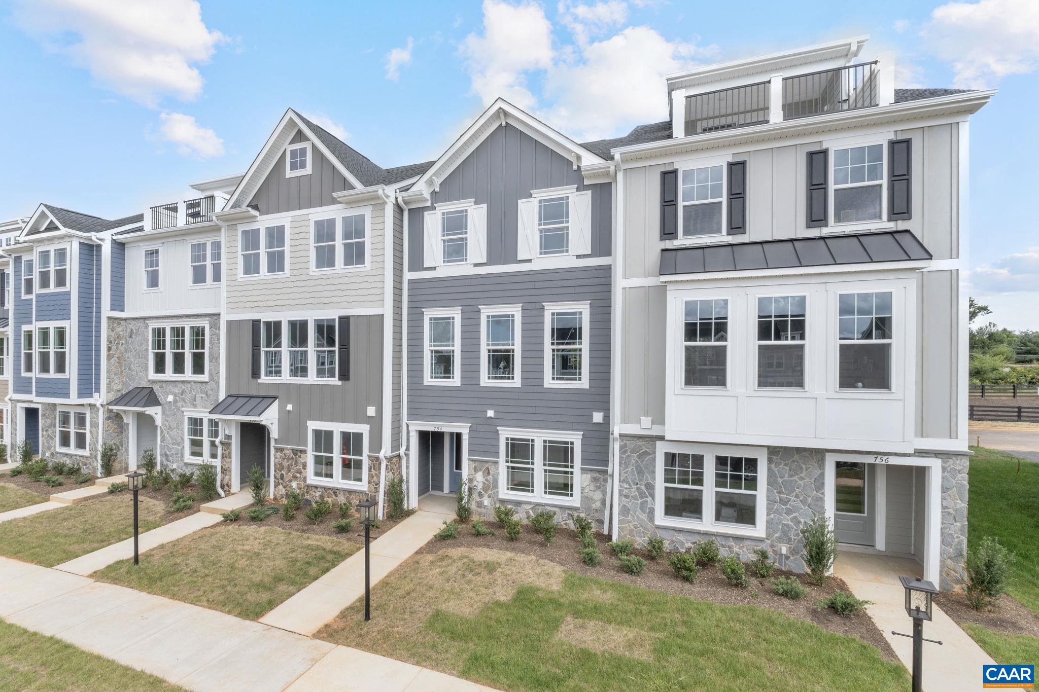 Just completed - actual photos! This Poplar II townhome in Glenbrook offers a comfortable, farmhouse-style layout surrounded by mountain views, green spaces, and walking trails—all within easy reach of downtown Crozet. This interior unit features a bright kitchen with plenty of prep room and a walk-in pantry, a spacious rear deck off the main level, and a first-floor bedroom with its own full bath that works well for guests or a home office. You'll find thoughtful touches throughout, like oak stairs, solid core interior doors, wood shelving, and an energy-efficient furnace. A two-car garage is included for added convenience. Community perks include a nearby path to Crozet Park and future access to downtown via a planned trail.