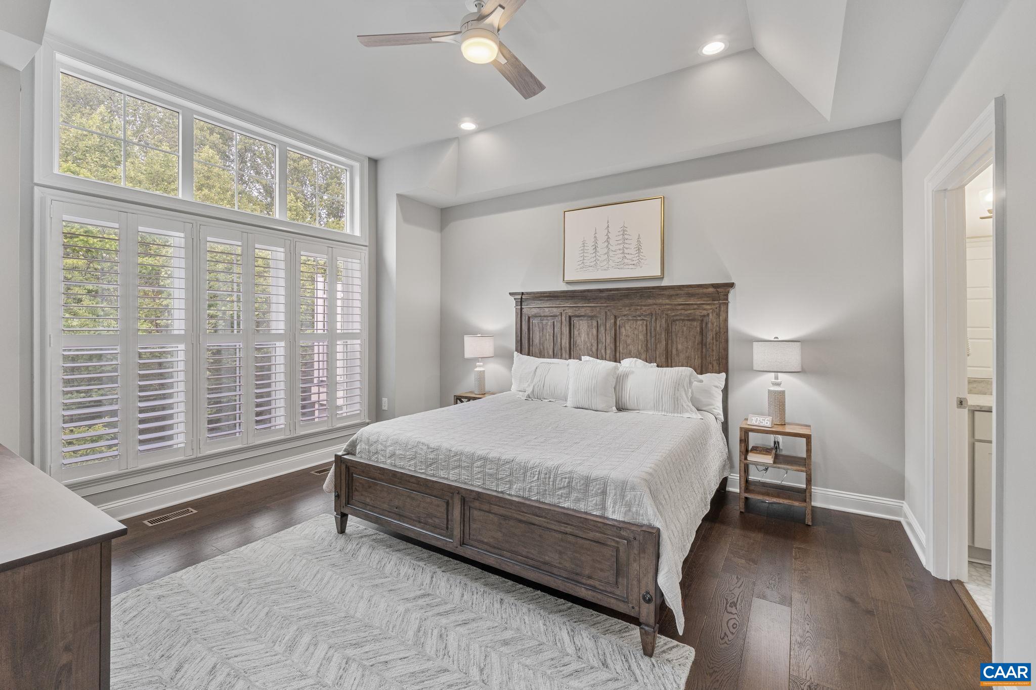 Gorgeous end-unit villa offering privacy and nature in a quiet section of Old Trail. This 5 bed 3.5 bath home with 2-car garage offers main-level living with a rare tree and stream buffer. Upon entry you will be greeted in the elegant foyer which opens to a well-appointed home office with built-ins and natural light. The hallway leads to the main living area with stunning vaulted shiplap ceilings and see-through gas fireplace to the screened-in porch. The dining room flows seamlessly into the impressive chef’s kitchen that boasts a large eat-in island, stainless steel appliances, and walk-in pantry. Off of the living room is the primary bedroom with gorgeous ensuite with glass shower and walk-in closet. The main level also features a mudroom and powder room leading from the garage. Upstairs you'll find 2 additional bedrooms, full bath, loft area, and huge walk-in attic for ample storage. The terrace level features a flex room plus approved ADU with full kitchen, 2 bedrooms, full bath, and family room that walks out to a covered patio. Located just steps away from the shopping, dining, and golf of Old Trail!