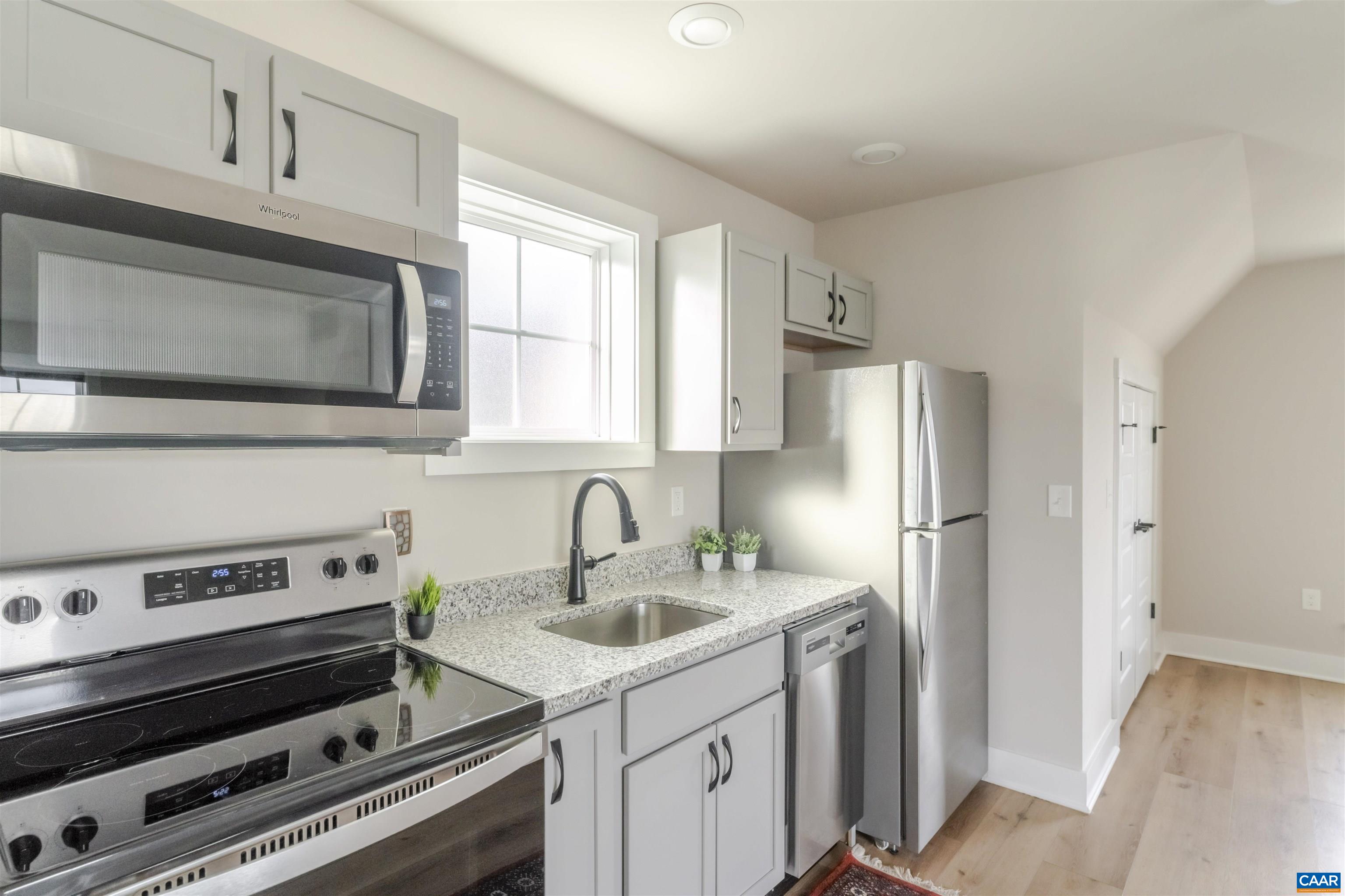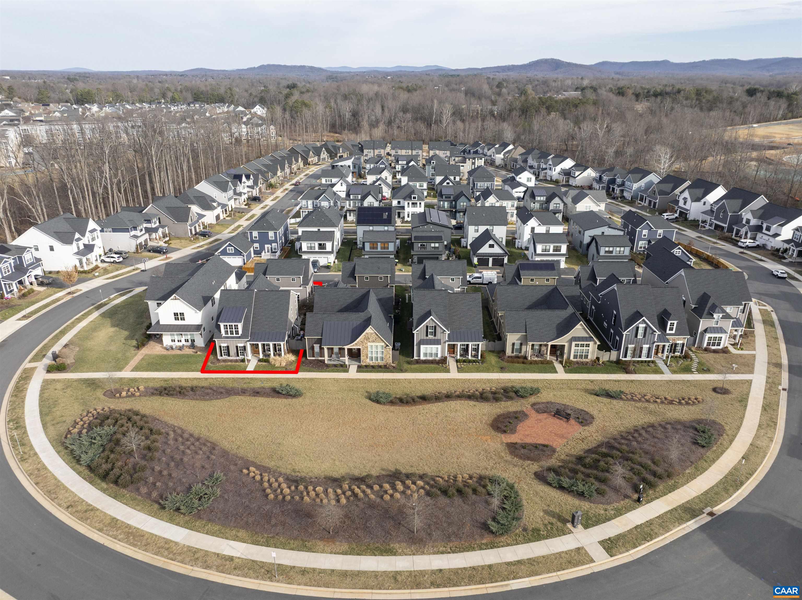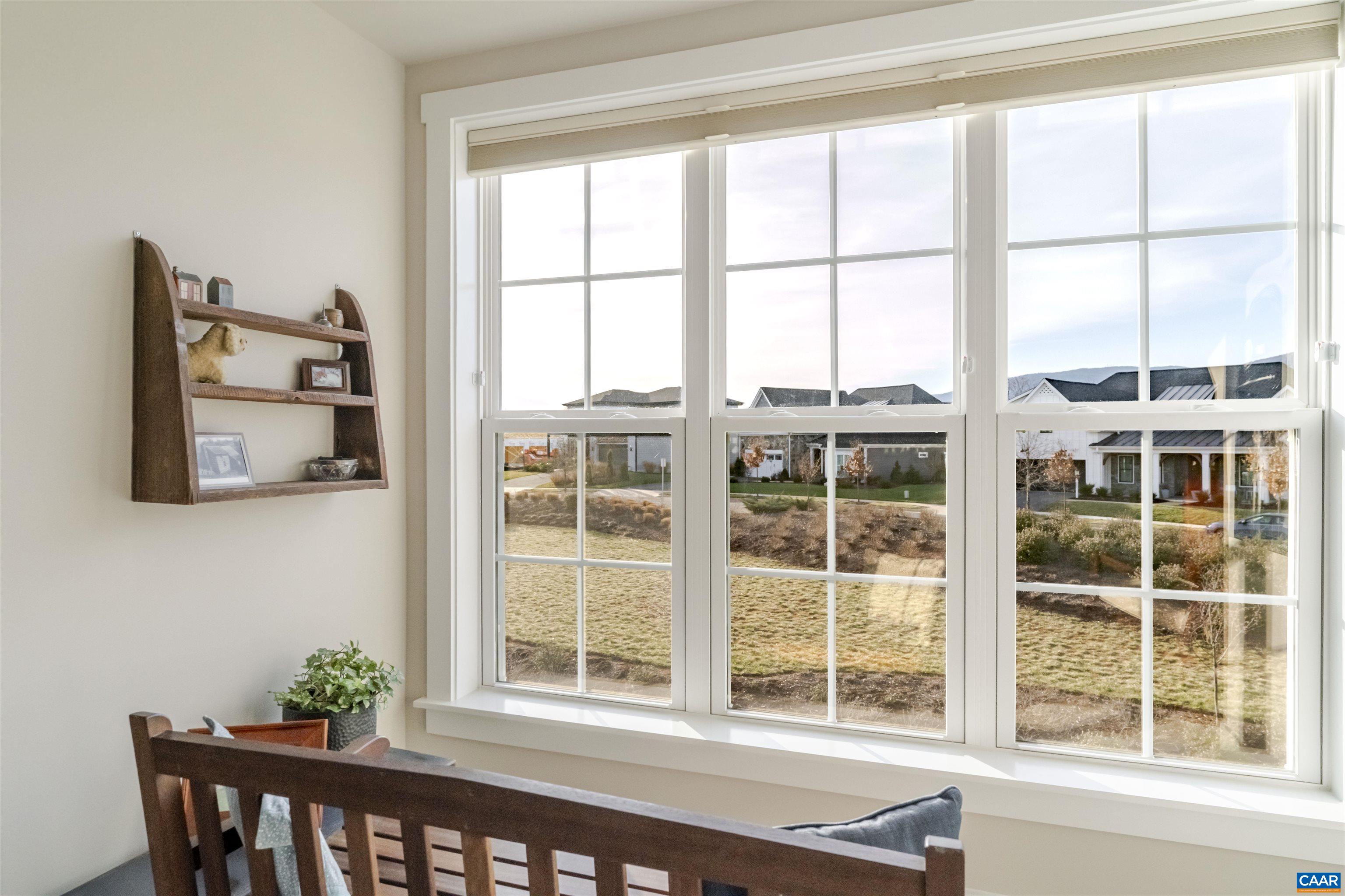 Set in the heart of the Old Trail community, this exceptional home is surrounded by mountain views, sidewalks, and resort-style amenities including a golf course, community pool, playgrounds, open fields for recreation, and popular neighborhood restaurants—all just steps away. Offering rare flexibility, the property features two distinct living spaces: a 3-bedroom, 3.5-bath main residence plus a fully finished ADU above the detached two-car garage, ideal for guests or rental income. Inside the main home, thoughtful design details shine—from the coffered ceiling anchoring the living room to the gas fireplace and walls of windows that flood the space with natural light. The gourmet kitchen is appointed with granite countertops and flows seamlessly into the dining area, where doors open to a screened porch overlooking a fenced courtyard framed by mature landscaping. The first-floor primary suite, dedicated study, and well-planned layout offer both comfort and convenience. Upstairs, each bedroom includes well sized closets and a private full bath. The home layout, craftsmanship, view to the open greenspace and Western sky sunsets make this a truly special property in one of Crozet’s most sought-after neighborhoods.