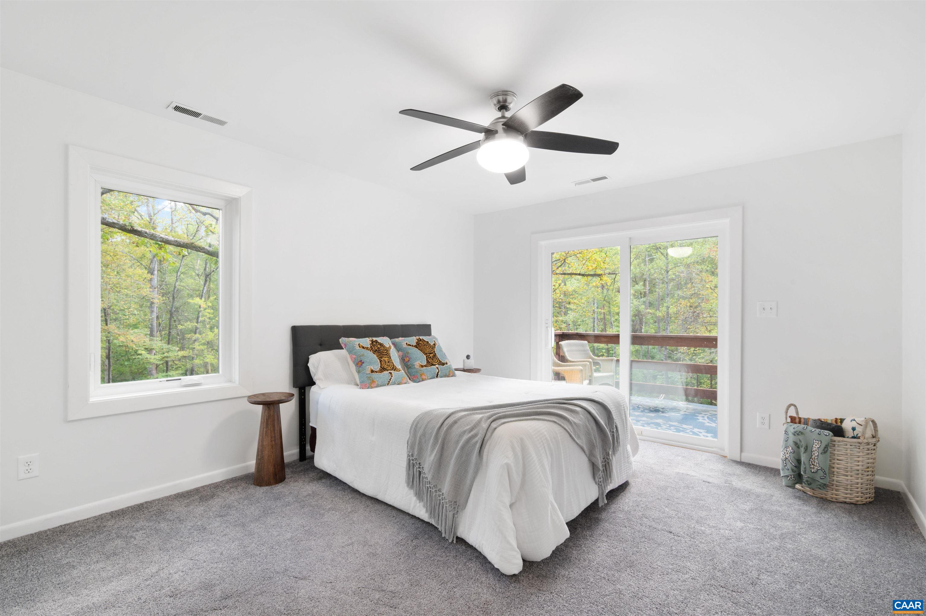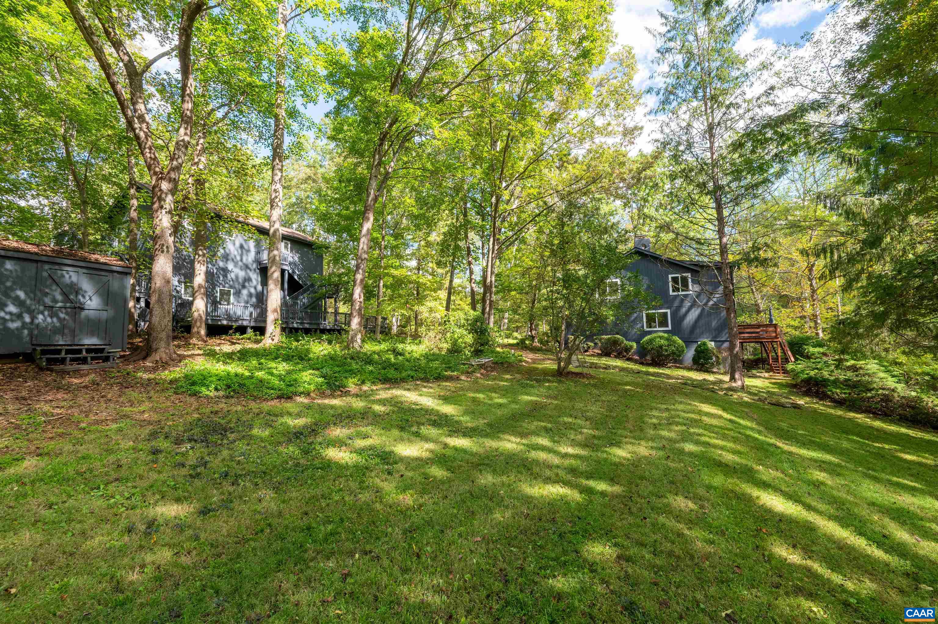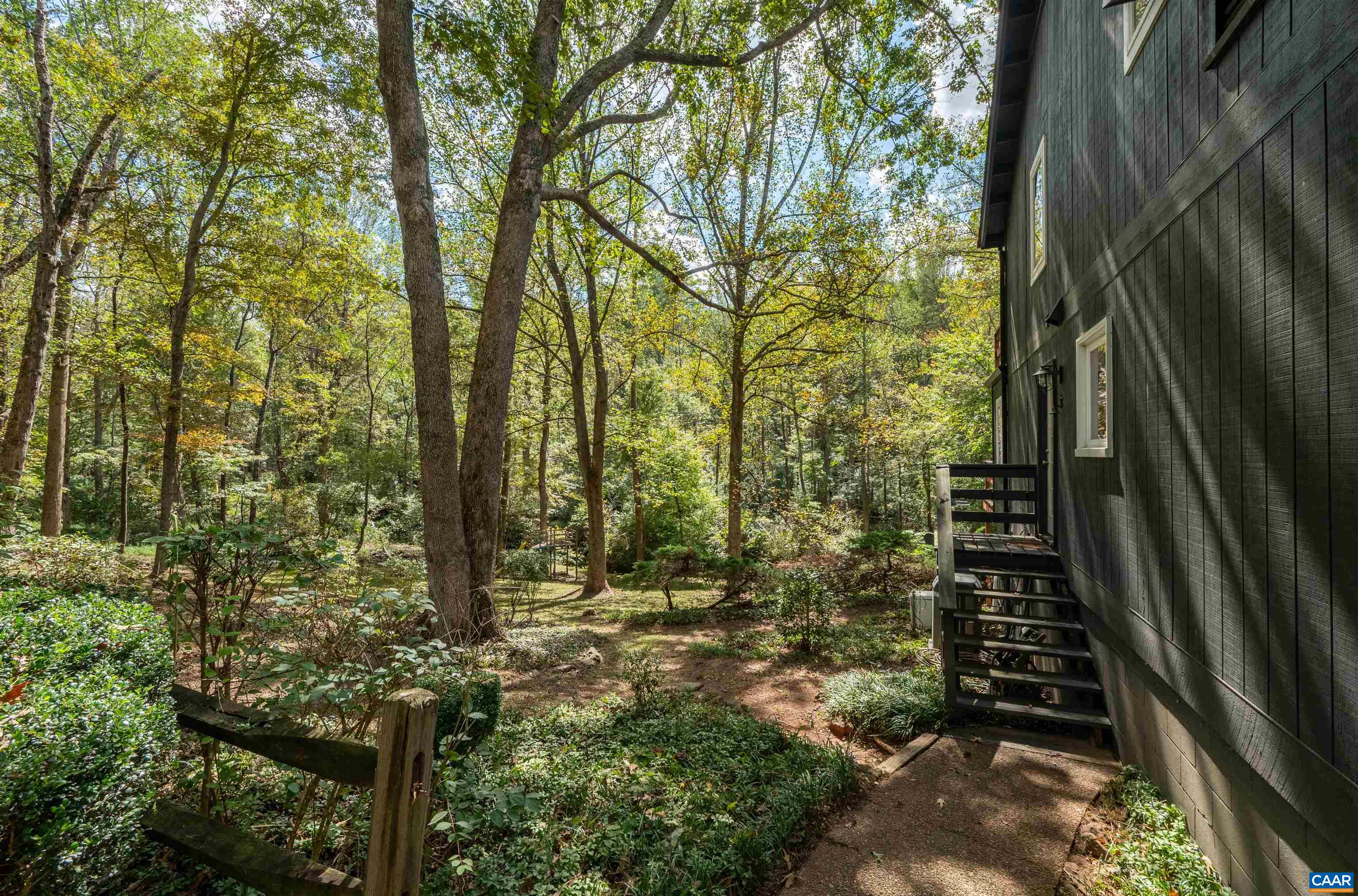 Tucked away on 5.82 private acres in Ivy, this four-bedroom, two and half-bath home offers a serene retreat surrounded by woods and a picturesque stream. The property features an oversized detached garage(space for 3 cars) with workshop and a one-bedroom apartment, providing ample storage and potential for rental income or a guest suite. The contemporary home boasts cathedral ceilings, a spacious back deck with scenic views, and a 1,500 sq. ft. unfinished basement with a wood stove and rough plumbing for a full bath, offering potential for storage, a workshop, or future finishing. Cozy up by the wood-burning, two-sided fireplace in the living room during winter. The primary suite includes a private balcony, and the home and garage apt. is equipped with high-speed fiber optic internet(1gb) for remote work. The expansive lot provides 4+/- acres of wooded area for kids and pets to enjoy, with trails, treehouses, and endless opportunities for adventure! A backup generator ensures uninterrupted power. Located in the desirable Western Albemarle School District, this home offers the added convenience of being less than 2.5 miles from the interstate & just a 15-minute drive to Charlottesville city & UVA.