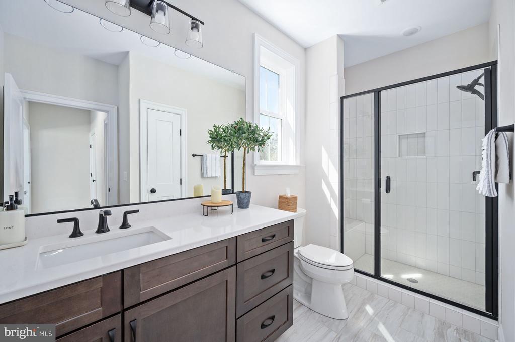 A gently curving 250-foot driveway leads you up to this stunning Simply Home-built colonial, set on a hilltop overlooking 5 acres of beautifully maintained grounds. Mature trees form a natural perimeter around the property, creating a peaceful, private refuge that feels worlds away ”” yet sits just minutes from area shopping, dining, schools, and I-95. From the moment you arrive, this home delivers something rare in today's market: space, privacy, and craftsmanship. The stacked stone facade and generously sized covered flagstone front porch set the tone before you ever step inside. Enter through the foyer and you're greeted by an abundance of natural light, nine-foot ceilings on all three levels, white oak hardwood floors, and refined details throughout. The dramatic two-story family room with box beam ceilings is the centerpiece of the main level, and the bright sunroom offers a quiet retreat for morning coffee or evening reading. A dedicated office with a spectacular view provides the ideal work-from-home setting. The heart of the home is a gourmet kitchen designed for both everyday living and entertaining, featuring an oversized island, farmhouse sink, walk-in pantry, and soft-close cabinetry. You'll find that same soft-close q