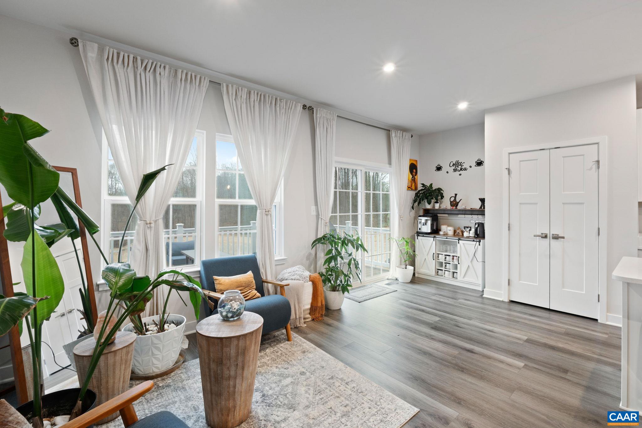 Beautifully maintained 2023-built end-unit townhome offering modern design, abundant natural light, and a spacious open-concept layout. The main level features a bright living area that flows seamlessly into the kitchen and dining space, ideal for everyday living and entertaining. The kitchen includes a large island, ample cabinetry, and modern finishes. Upstairs, the primary suite offers a tray ceiling, walk-in closet, and a well-appointed bathroom with double vanity, soaking tub, and separate shower. Additional bedrooms provide flexibility for guests, home office, or family needs. Enjoy outdoor living on the rear deck, perfect for relaxing or entertaining, with added privacy from the end-unit location. Conveniently located in a growing community near Charlottesville Airport, shopping, dining, and major routes. Move-in ready and designed for today’s lifestyle.